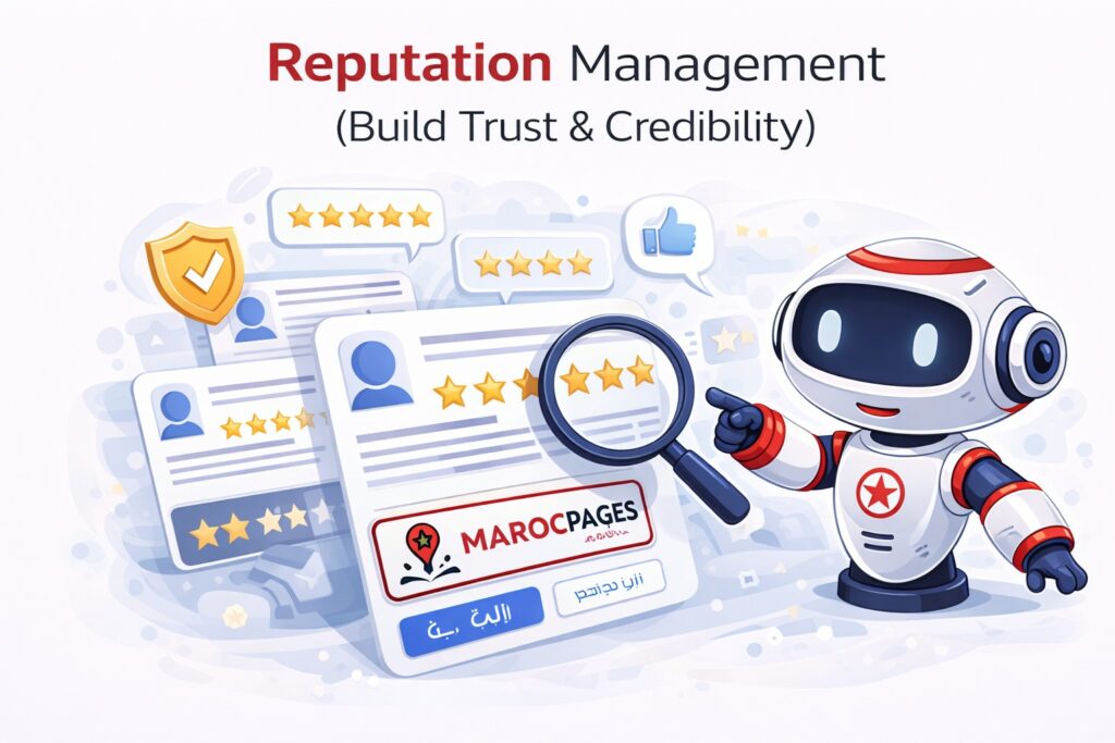 In today’s digital landscape, your reputation is one of your most valuable assets. Before choosing a business, most customers will check reviews, ratings, and online feedback. A strong reputation builds trust instantly, while poor or missing reviews can cause potential customers to look elsewhere — even if your service is excellent. Maroc Pages’ Reputation Management service ensures that your business stands out with credibility, trust, and positive customer perception.